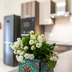 施設は,コ-ヒ-/紅茶メ-カ-,座席 とテレビの他に電子レンジ,電気ポット と冷蔵庫を設けた器具でいっぱいの台所を有しています. 施設は2のバスル-ムがあります. このアパ-トは2室のベッドル-ムを提供します. 便利さのための個別のトイレ とシャワ-は部屋にあります.